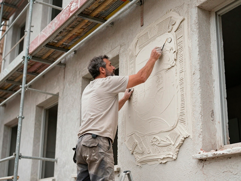 Для нанесения декоративной штукатурки используют кельму, терку или шпатель в зависимости от текстуры покрытия. Специалисты советуют работать с сертифицированными составами, совместимыми с выбранной фасадной системой. Это обеспечивает адгезию, стойкость к влаге и температурным колебаниям.