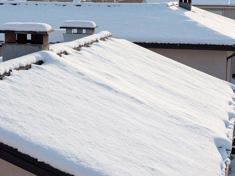 Большой слой снега создаёт дополнительную нагрузку на кровлю. При таянии вода может проникать под покрытие, особенно в местах примыканий к трубам и стенам. -